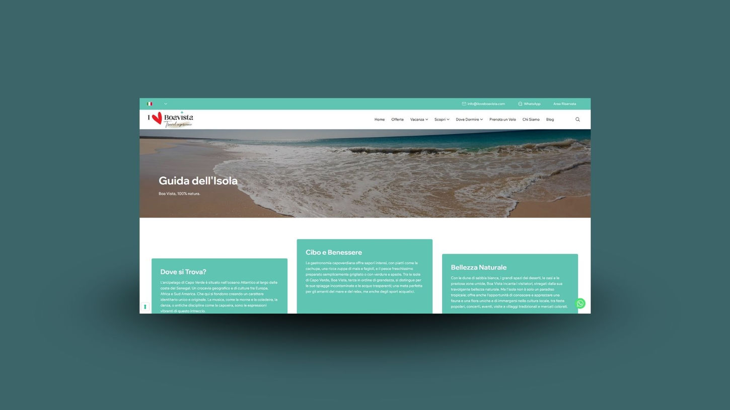 La sfida principale era creare un sistema che fosse non solo bello da vedere, ma anche realmente utile dal punto di vista operativo. Grazie a un CMS strutturato, il sito permette di aggiungere e aggiornare facilmente nuove offerte, viaggi ed esperienze, senza interventi tecnici complessi. I moduli dedicati sono collegati a un sistema di automazioni che guida e semplifica la gestione delle richieste, riducendo il lavoro manuale. A completare il progetto, è stata realizzata un’area riservata per le agenzie partner, con news e aggiornamenti su Boa Vista, pensata per migliorare la comunicazione interna e rafforzare le collaborazioni.